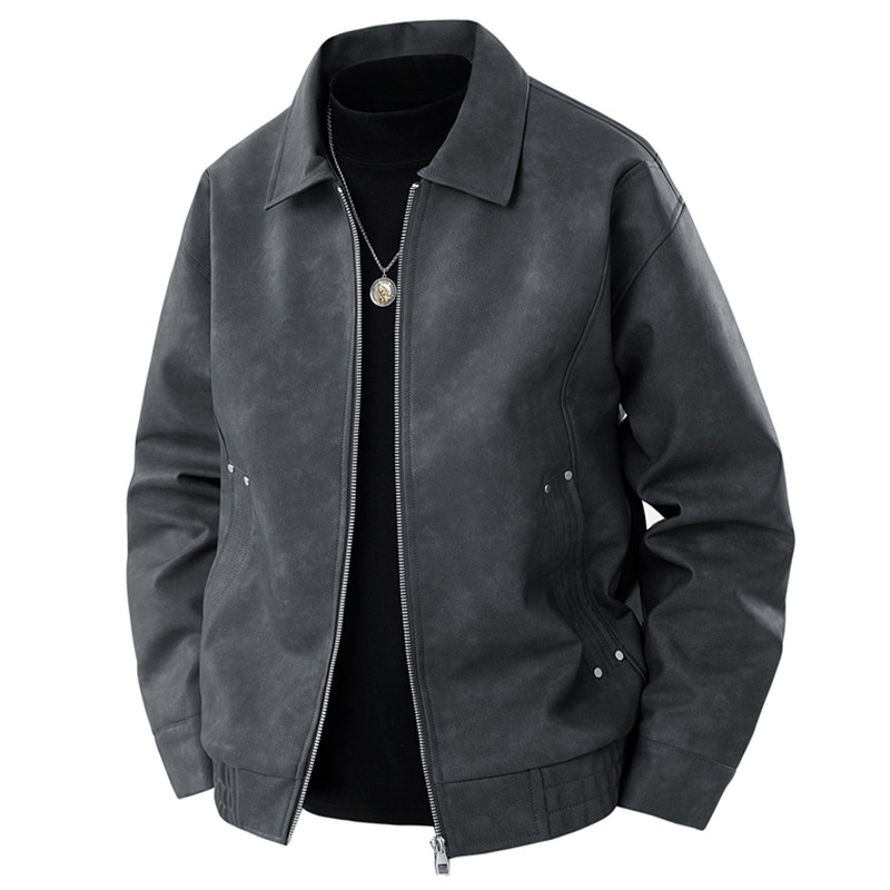 罗蒙皮衣外套男春秋季2025新款翻领宽松美式复古男士皮夹克上衣服