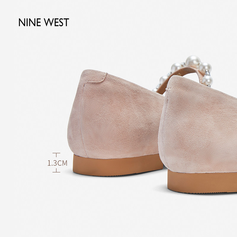 【商场同款】Nine West/玖熙春季新款复古反绒单鞋珍珠玛丽珍鞋女