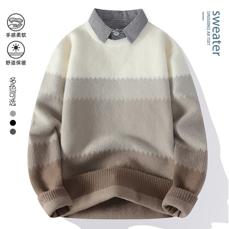 唐狮集团DESSO衬衫领毛衣男冬季假两件针织衫男内搭青少年上衣