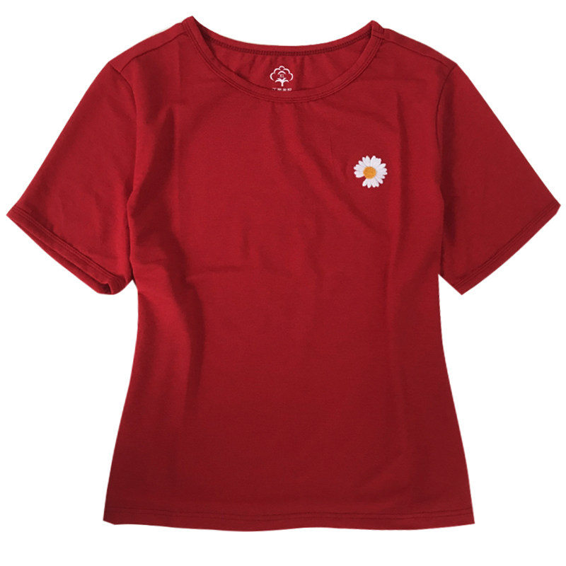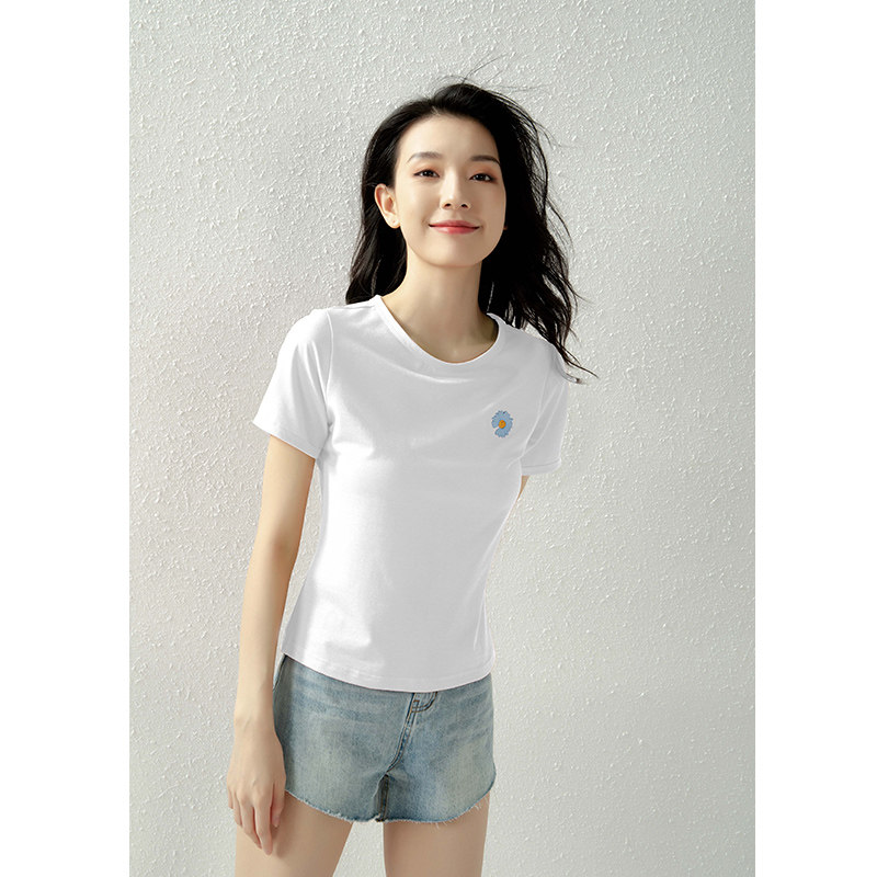 红色t恤女夏季短袖竹节棉小款