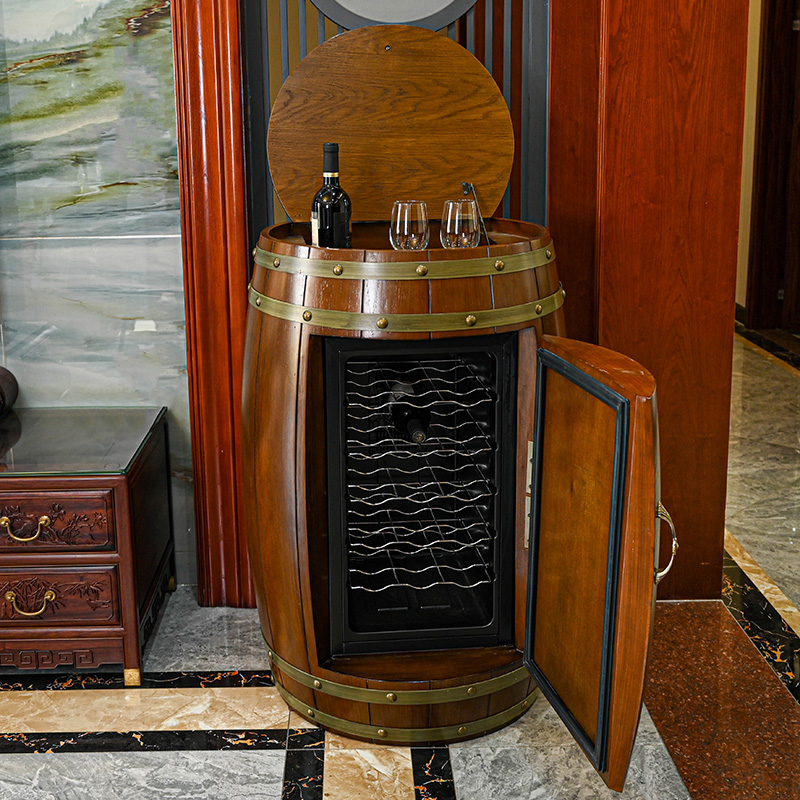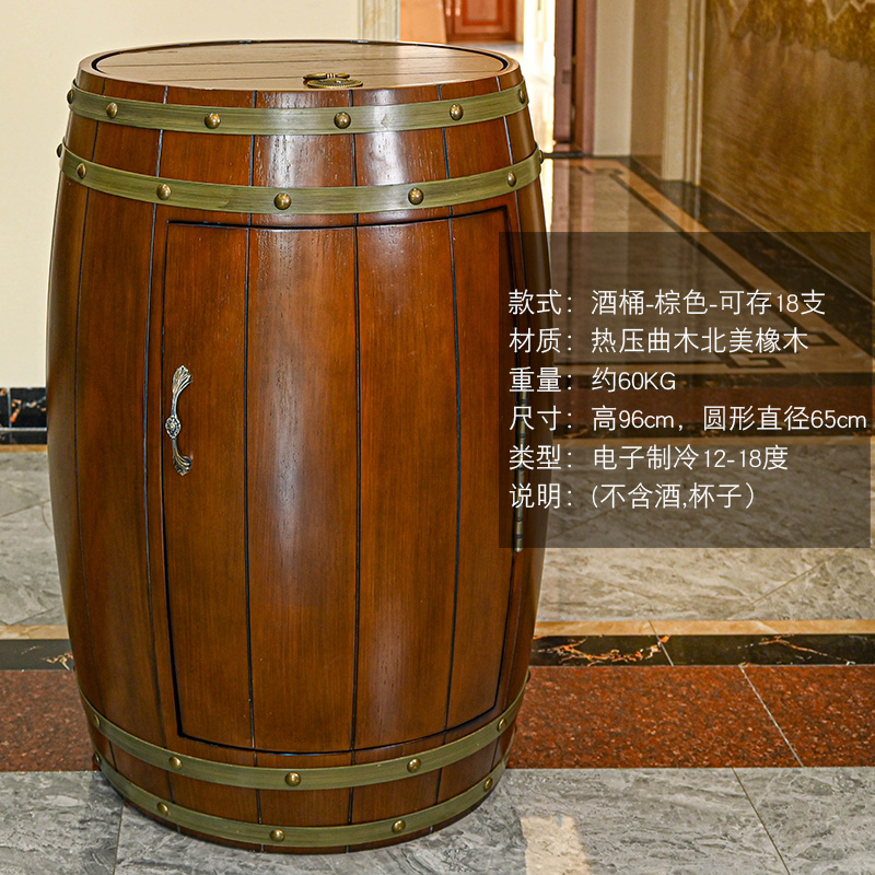 红酒柜恒温酒柜复古橡木酒桶柜子美式欧式冷藏小型冰吧家用客厅