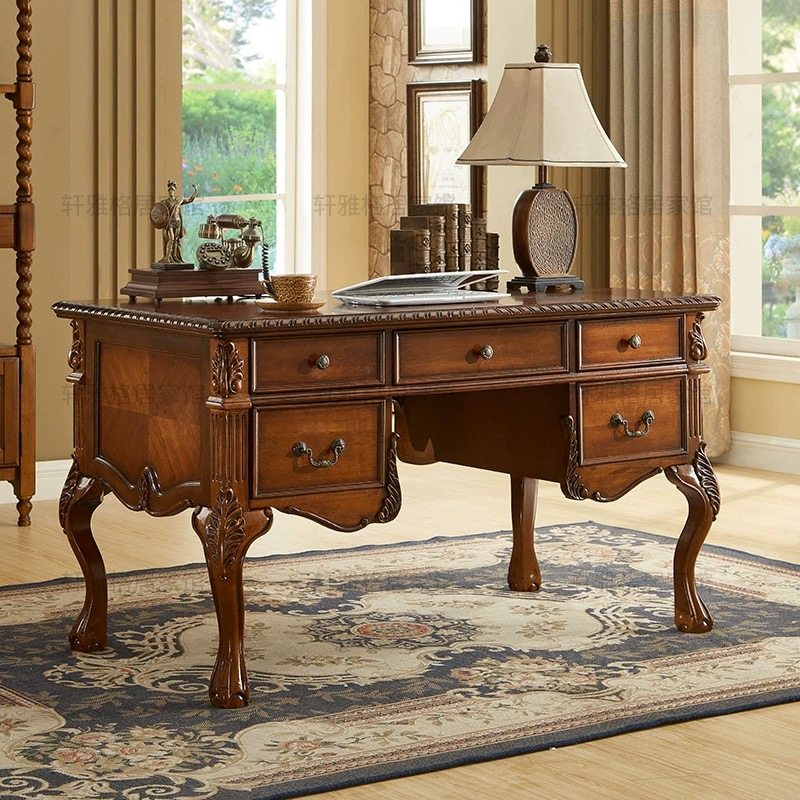 美式实木仿古大书桌办公桌老板电脑桌欧式写字台书法桌书桌椅组合