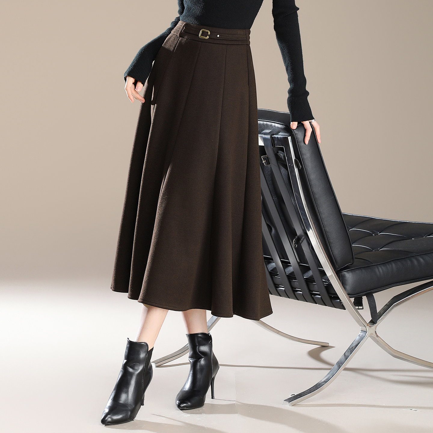 时尚大摆羊毛呢半身裙女秋冬季加厚高腰显瘦遮胯a字伞裙过膝长裙
