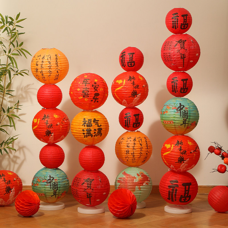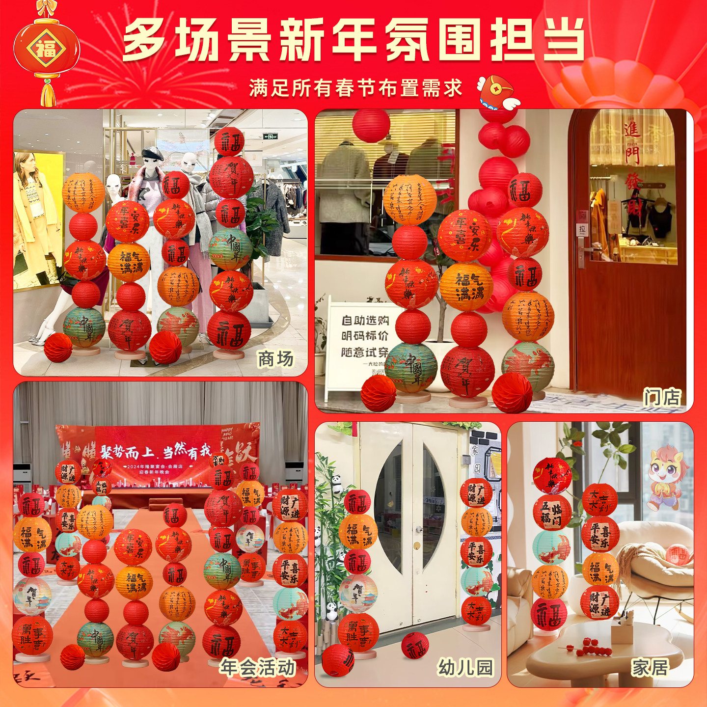 马年红灯笼花灯2026新款新年装饰品立柱摆件过年春节氛围场景布置