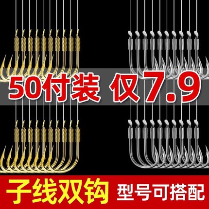 鱼钩绑好子线双钩成品套装钓鱼袖钩全套伊势尼伊豆金袖渔具鲫鱼钩