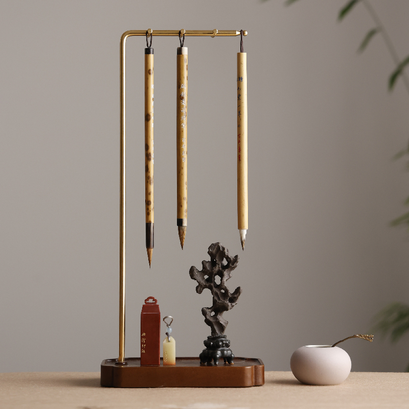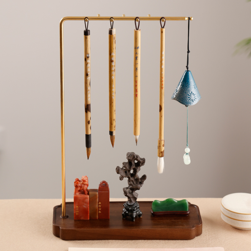 海棠文承笔挂毛笔架 实木创意新中式书法用木器文房四宝摆件挂笔