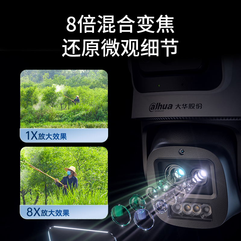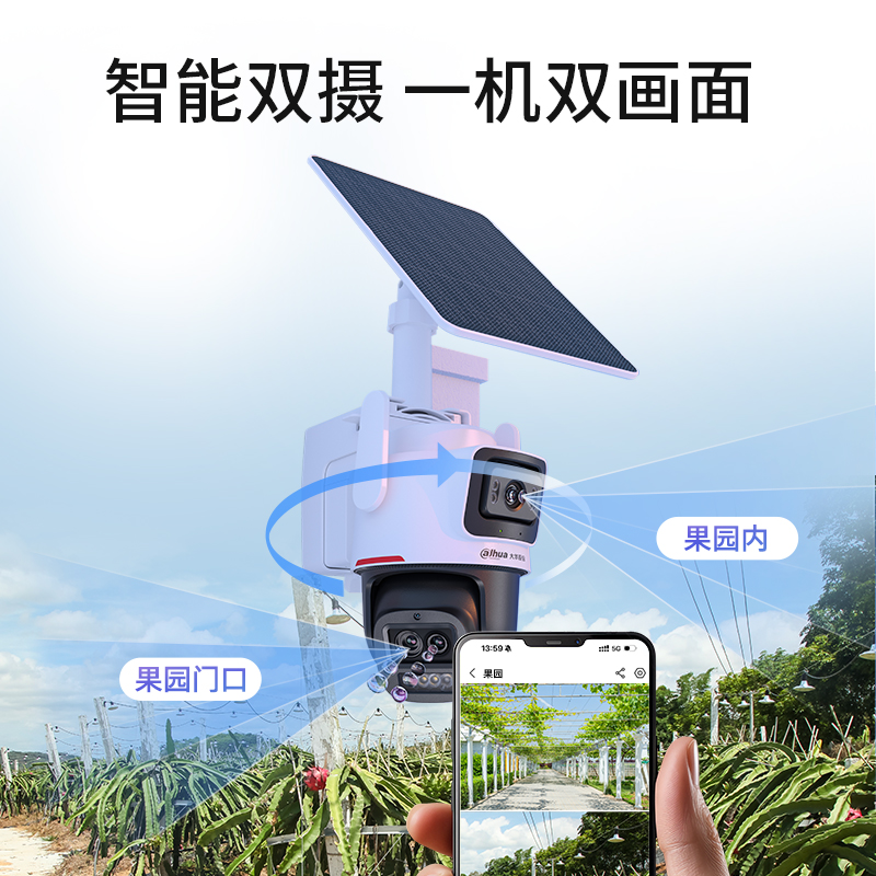 大华4G终身流量夜视王太阳能双目变焦摄像头家用监控无线摄影头