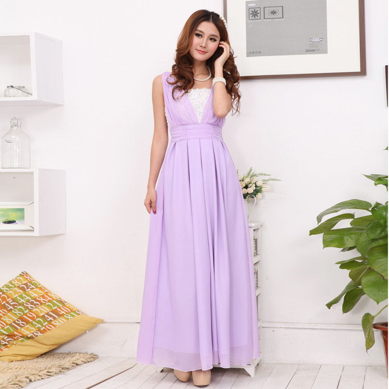 无袖雪纺连衣裙子女装姐妹裙长款长裙子伴娘服晚装优雅礼服裙913