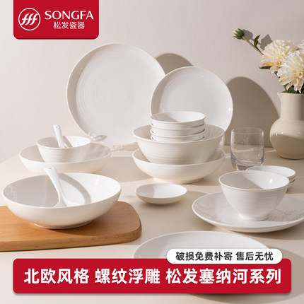 松发瓷器高温瓷釉下彩餐具套装家用碗盘碟乔迁新居纯白陶瓷餐具