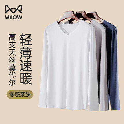 猫人莫代尔保暖内衣男款无痕单件上衣薄款打底衫秋衣秋裤男士套装