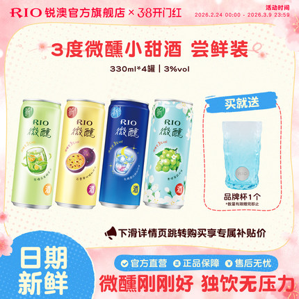 RIO锐澳预调鸡尾酒3度微醺多口味330ml*4罐果酒低度酒女士气泡酒