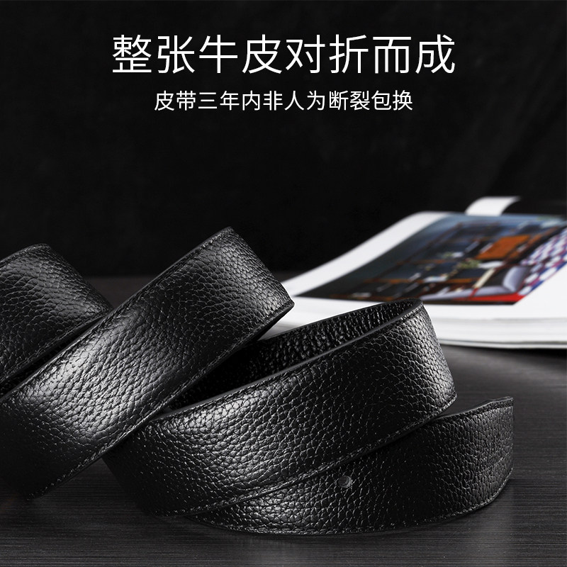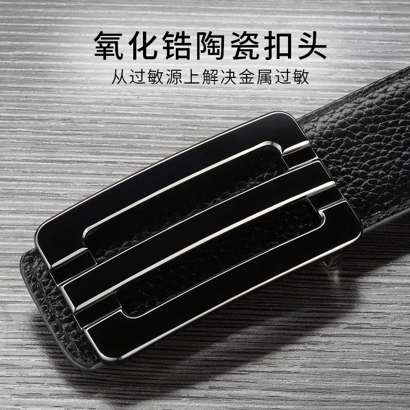 金利缘【防金属过敏】男士皮带真皮牛皮腰带平滑扣无塑料陶瓷裤带