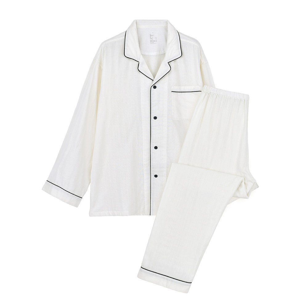 无印品质睡衣女双层纱布纯棉长袖春夏秋薄款男女情侣款家居服套装