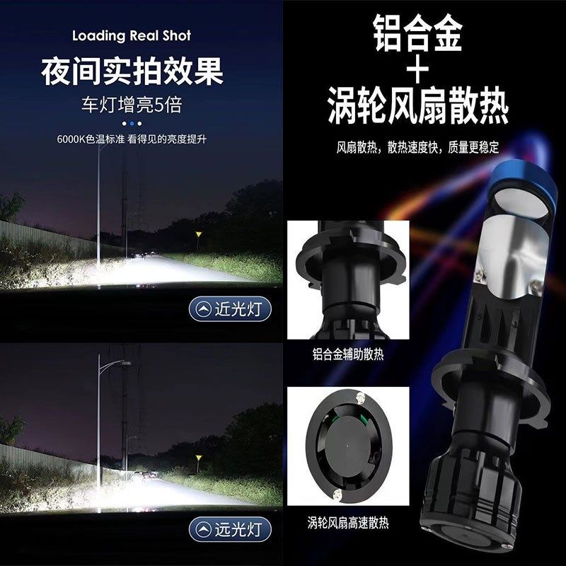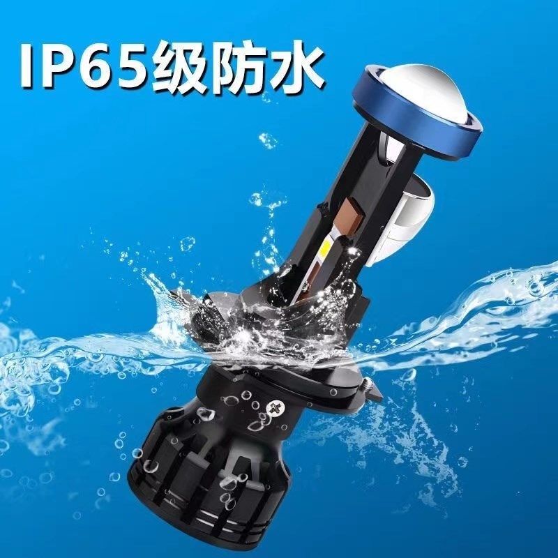 摩托车H4三爪LED双光透镜聚光大灯踏板车远近一体带切线超亮灯泡