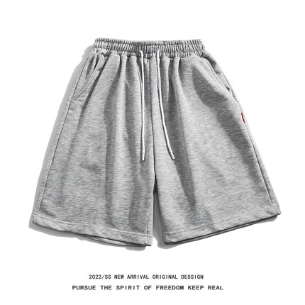 2025夏季纯色简约短裤男潮牌宽松bf休闲潮流松紧腰抽绳运动五分裤