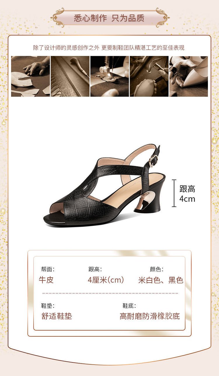 品牌断码一字带罗马凉鞋女夏季粗跟新款牛皮真皮镂空百搭鱼嘴中跟