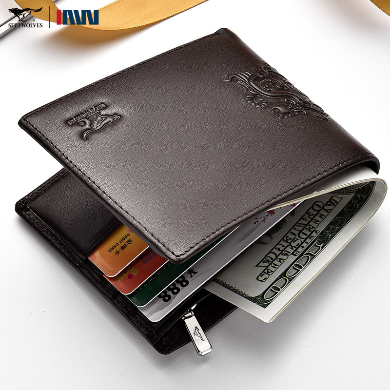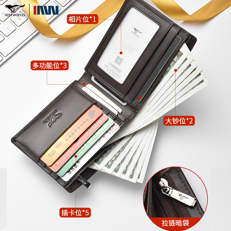 七匹狼钱包男士真皮带拉链七夕头层牛皮夹生日礼物送男友老公爸爸