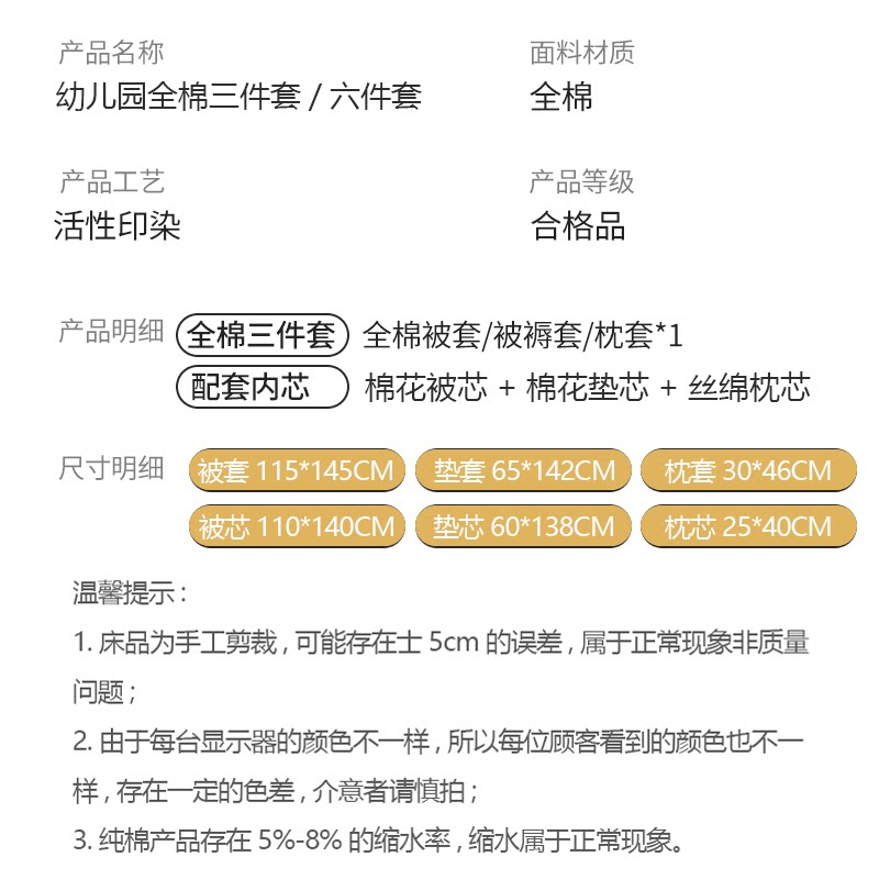 幼儿园纯棉被褥件套【可定制】