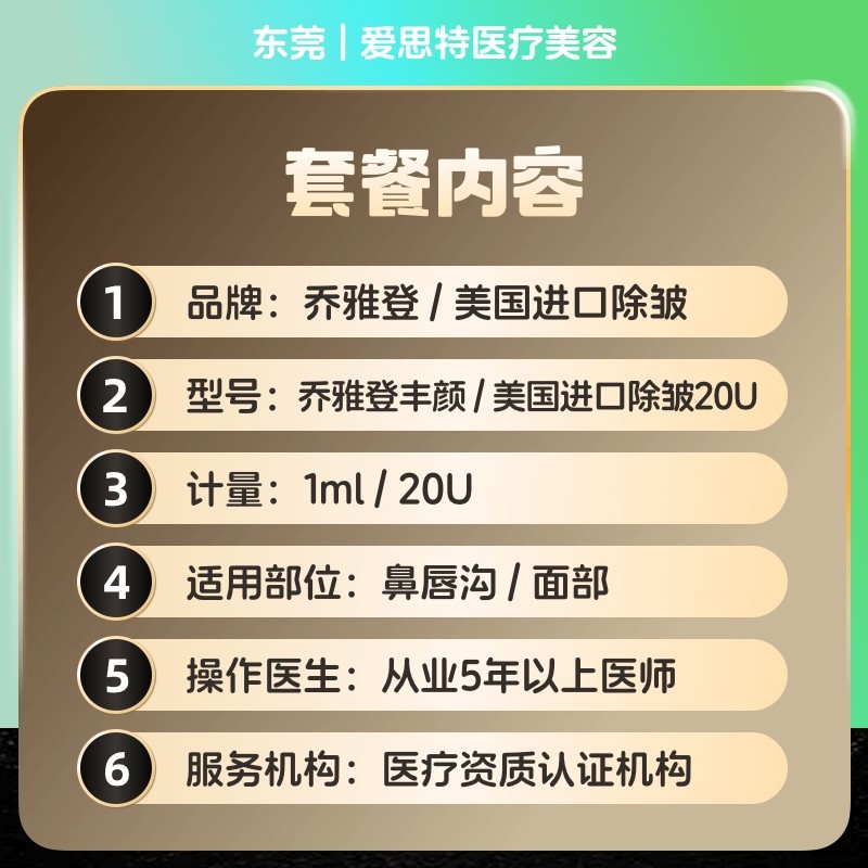 【到店医美】东莞爱思特医疗美容乔雅登玻尿酸丰颜1ml*1支