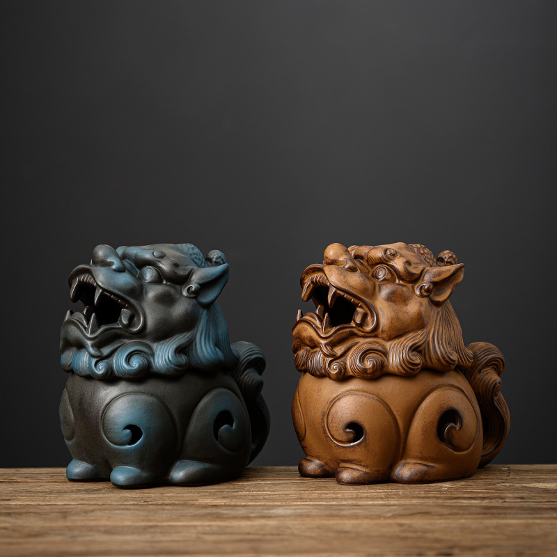 创意陶瓷狻猊盘香炉禅意沉香香薰炉家用室内茶道香炉桌面貔貅摆件