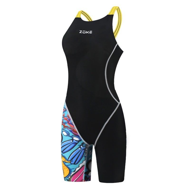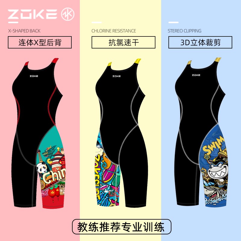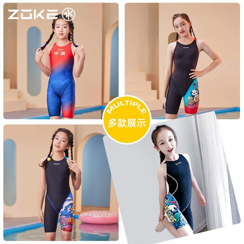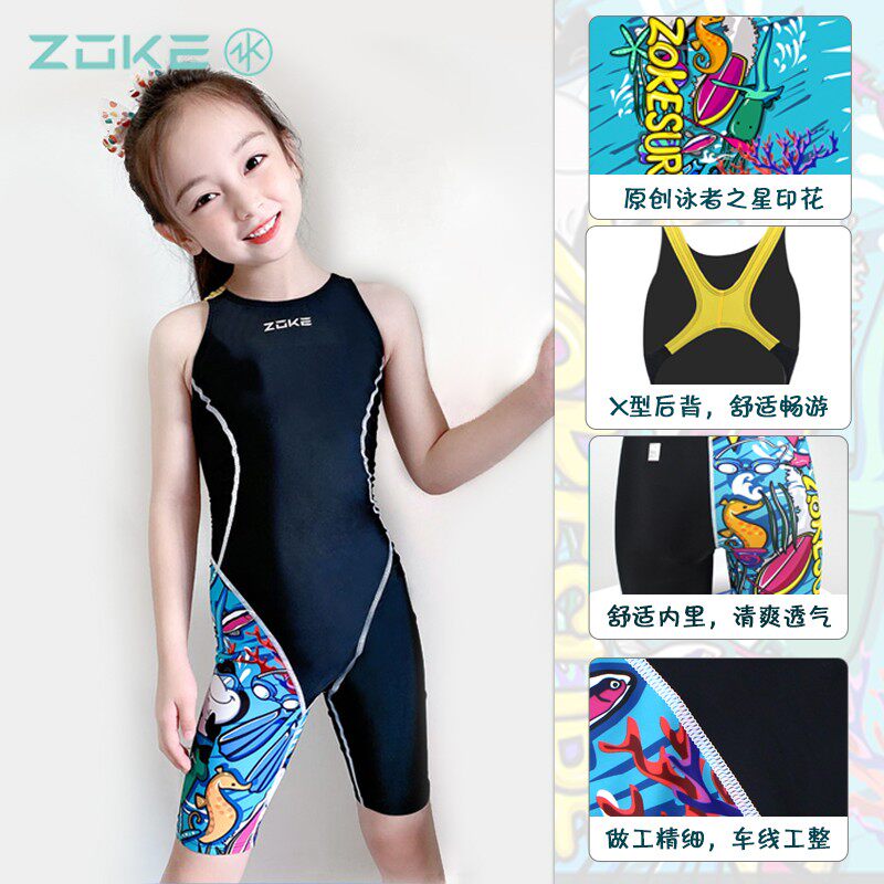 ZOKE洲克新款儿童泳衣女孩女童游泳衣五分连体专业训练速干中大童
