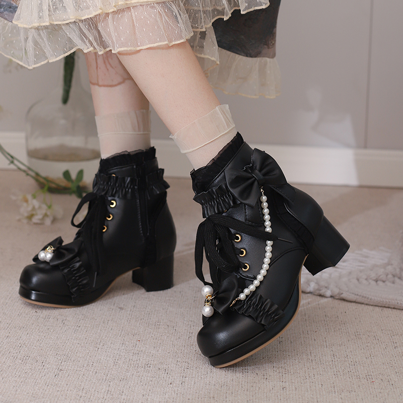 女童靴子2025新款儿童马丁靴白色lo演出短靴冬大童洛丽塔高跟皮靴