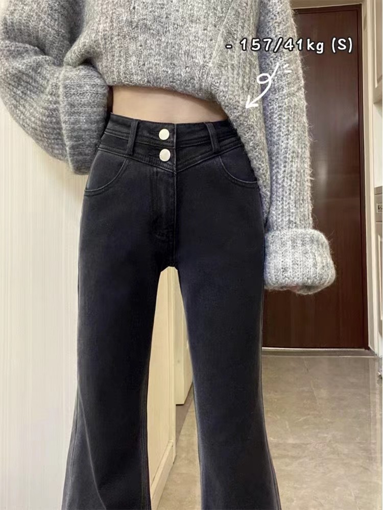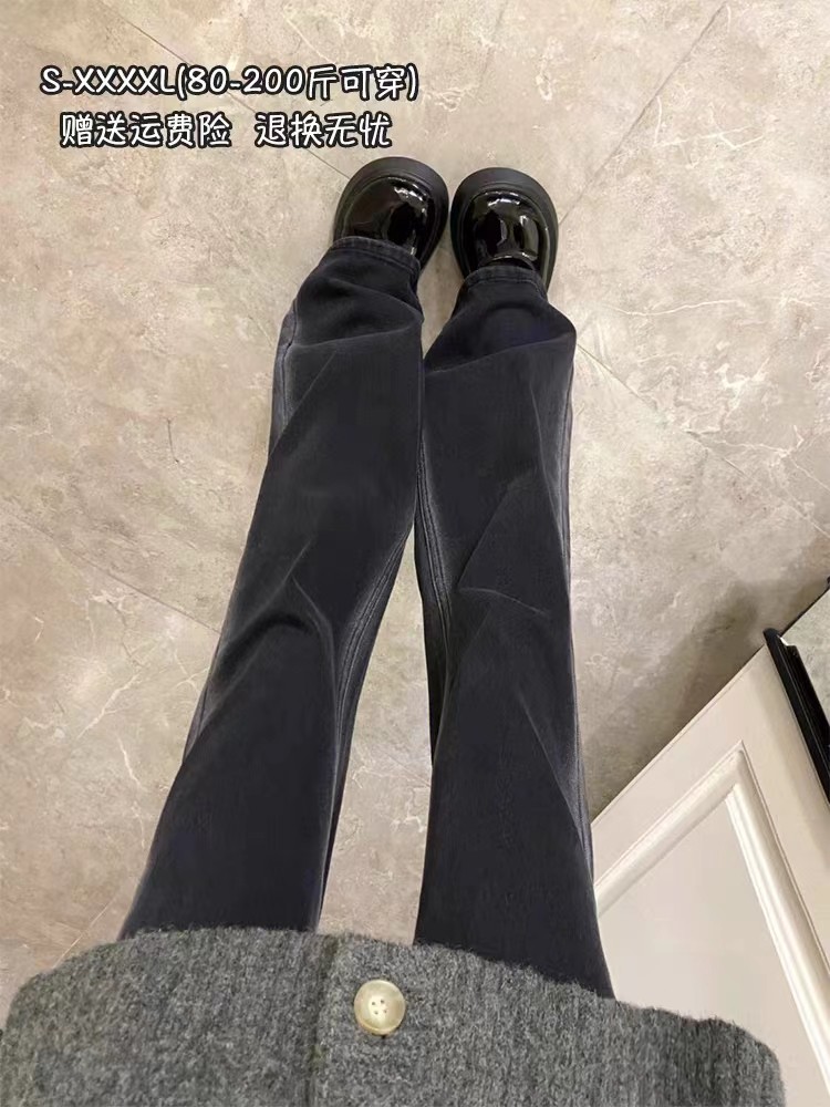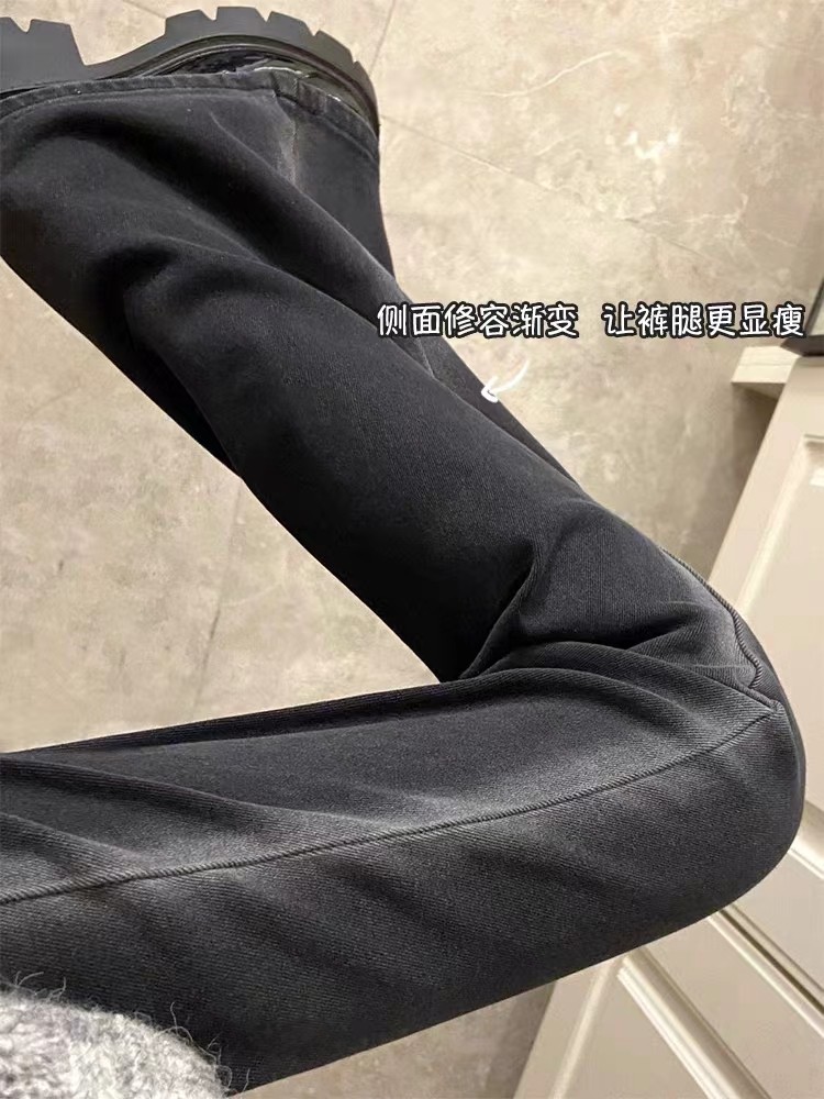 大码胖妹妹黑色微喇叭渐变色牛仔裤女秋冬新款修身百搭显瘦马蹄裤