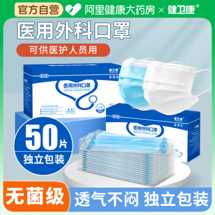 健卫康一次性使用医用外科口罩灭菌型成人三层防护医护用独立包装