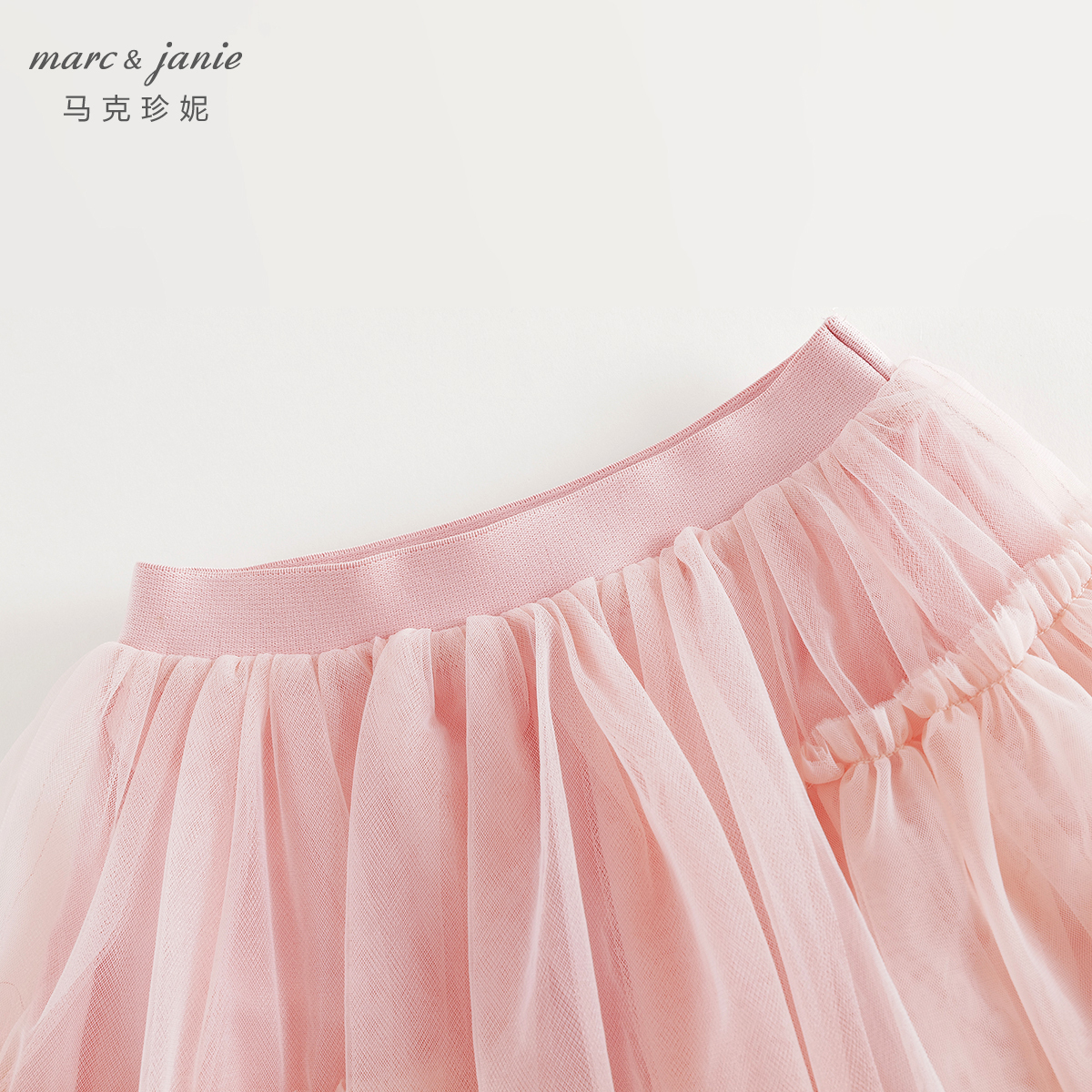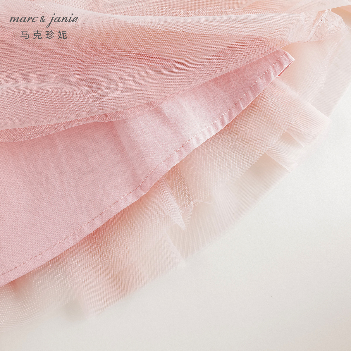 马克珍妮女童不规则网纱拼接短裙