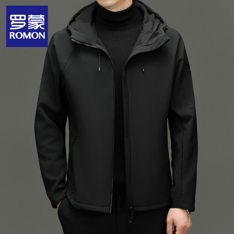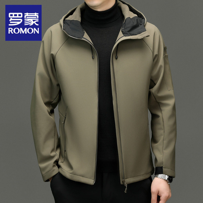 罗蒙加绒软壳冲锋衣外套2025秋季新款内里抗静电防风夹克男士连帽