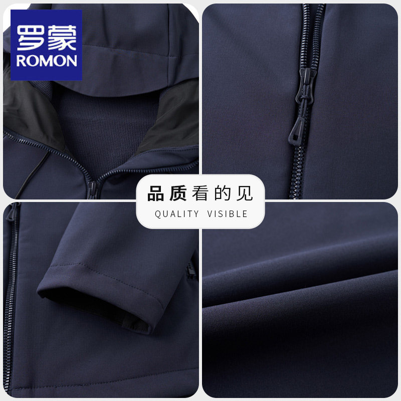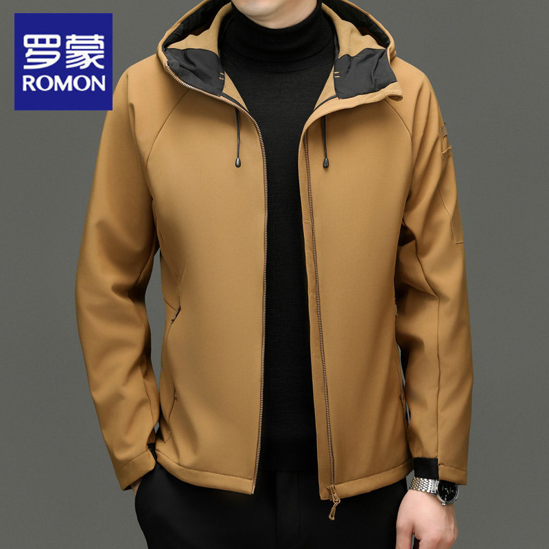 罗蒙夹克男冲锋衣春秋款加绒连帽