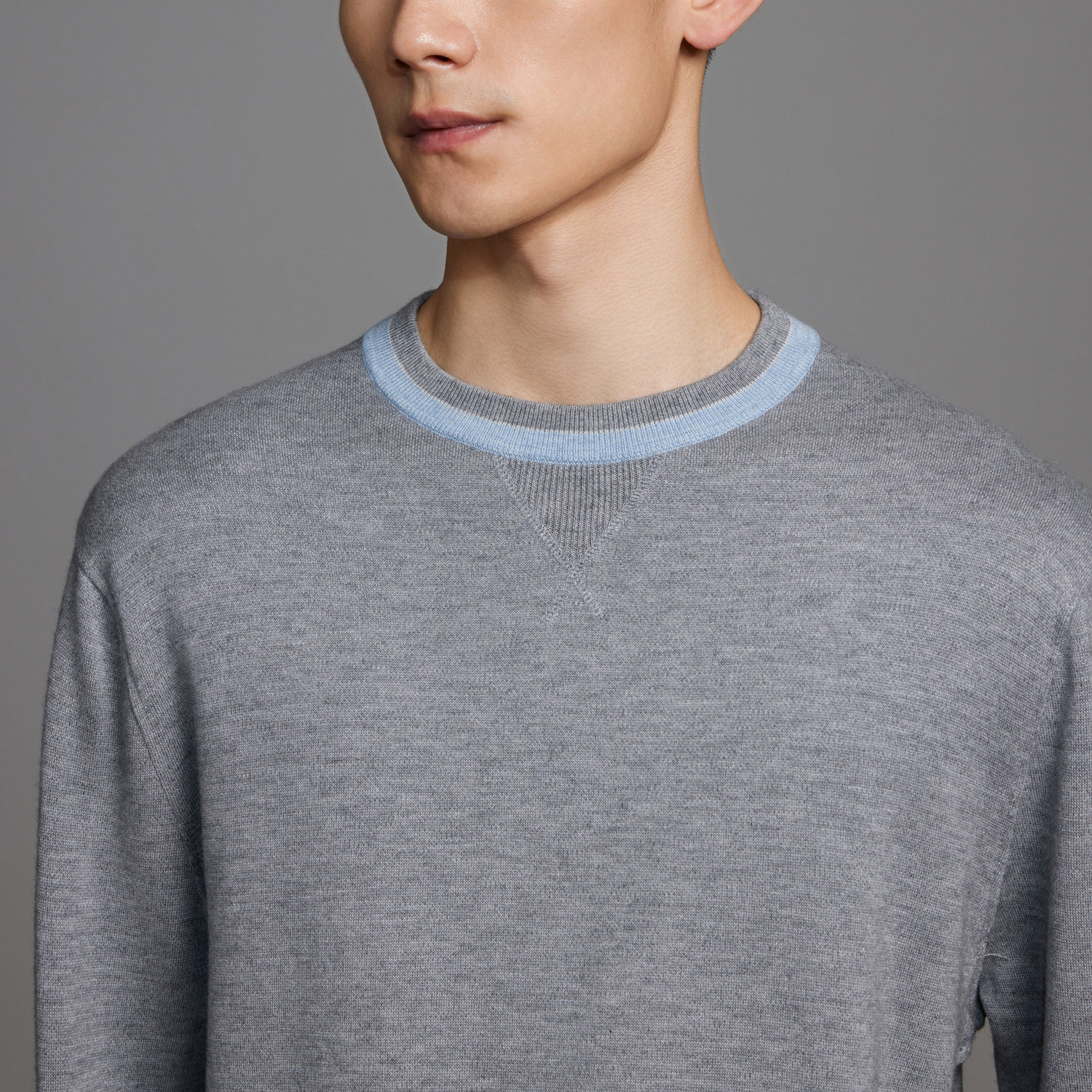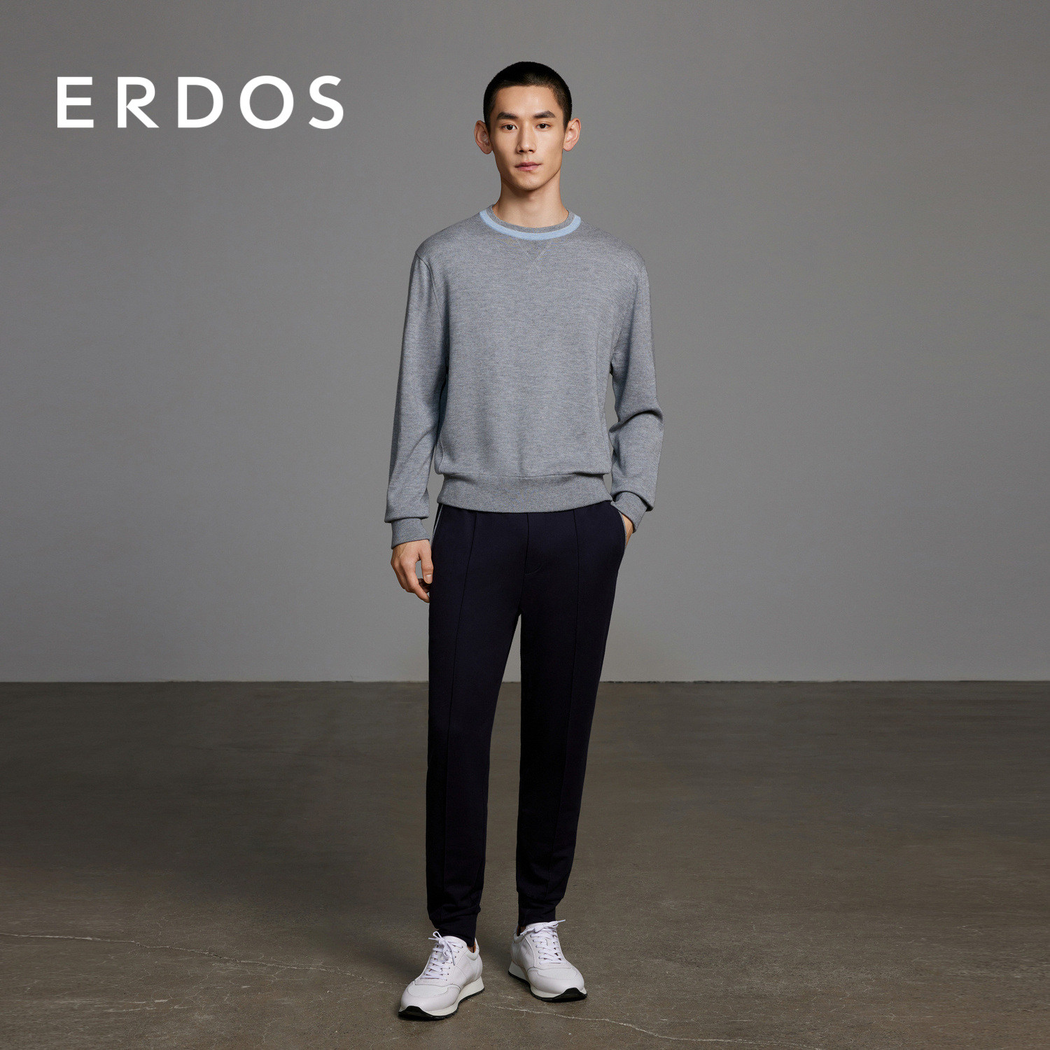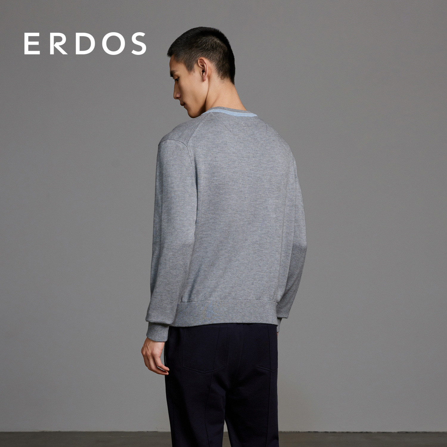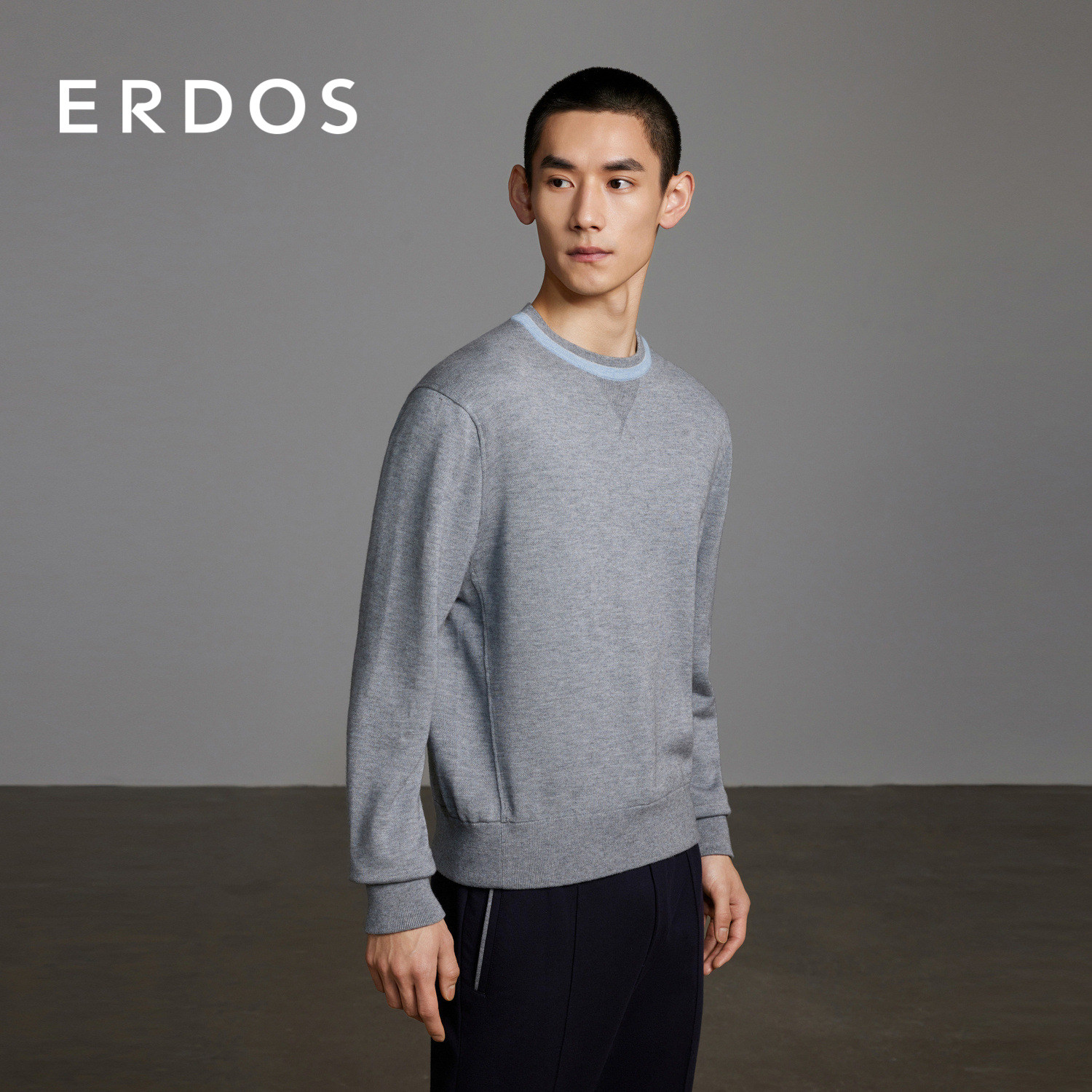 ERDOS 男装棉绒混纺针织衫春季款灰色精纺圆领卫衣版型套衫