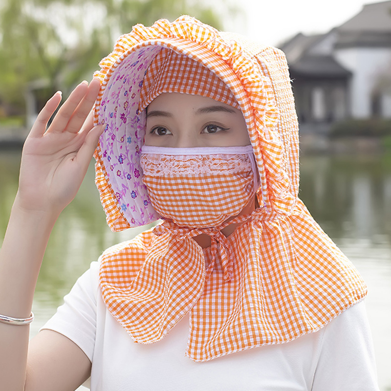遮阳帽女夏防晒遮脸护颈面罩防紫外线干农活采茶帽骑车大檐太阳帽