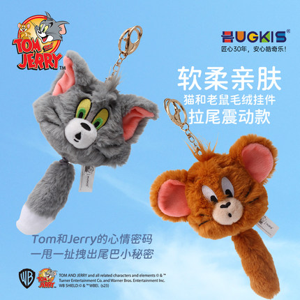 猫和老鼠新款趣味解压发泄毛绒玩具拉尾震动挂件书包挂饰玩偶公仔