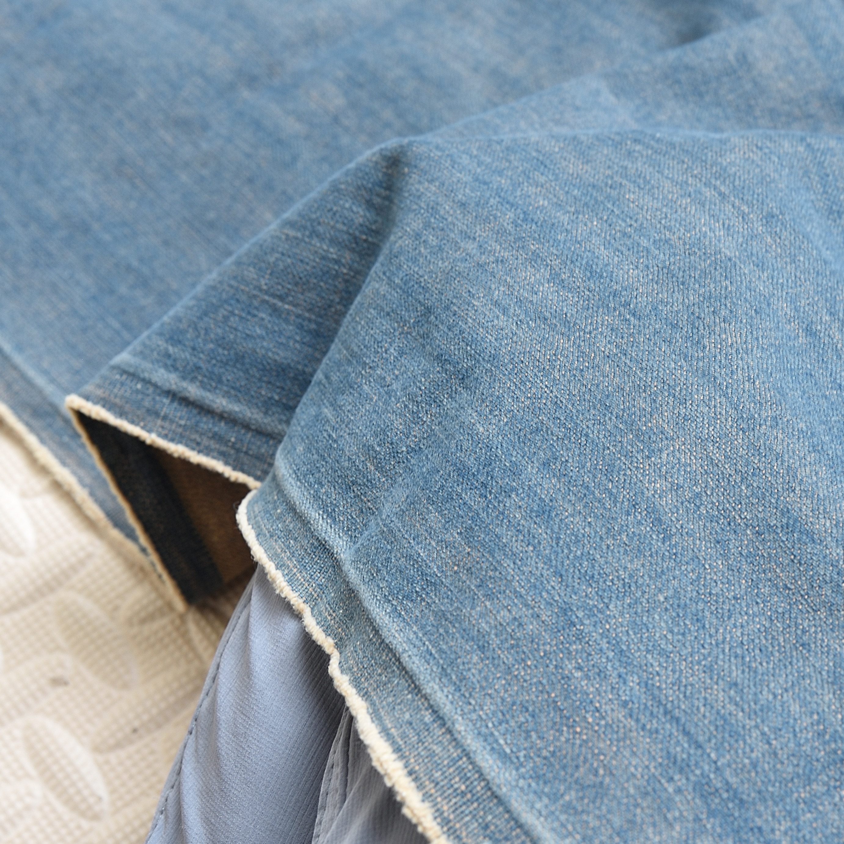 意大利牛仔布料土耳其日本进口水洗无弹力软垂纯棉丹宁涂鸦绿色