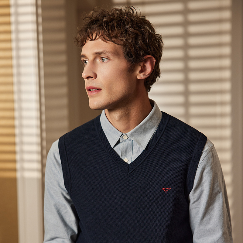 七匹狼V领内搭针织羊毛背心