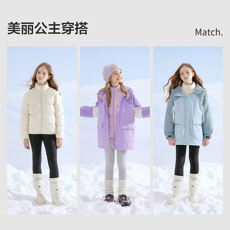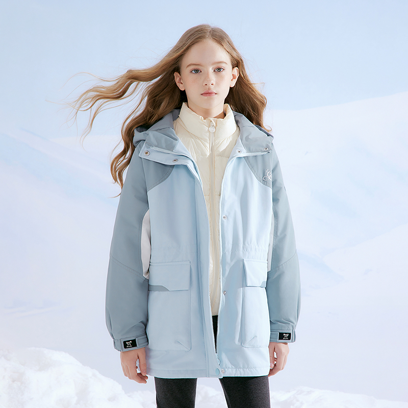 笛莎童装女童羽绒服冬季新款中大童儿童女孩三合一加绒风衣两件套