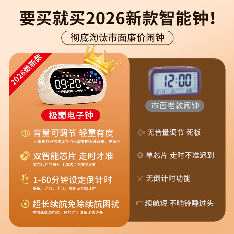 闹钟高中生专用学生专用起床神器智能儿童男女孩2026新款强力叫醒