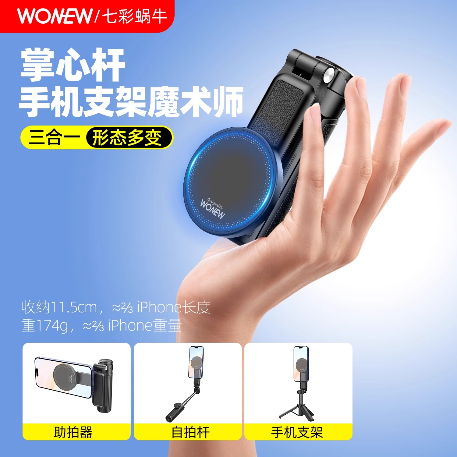 WONEW助拍器磁吸自拍杆三脚架