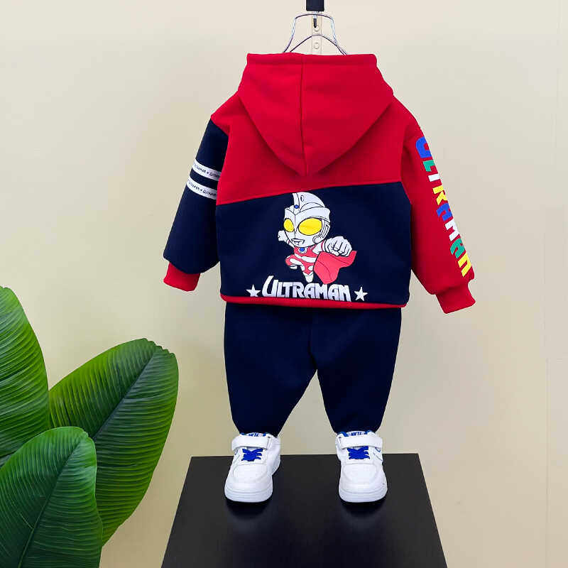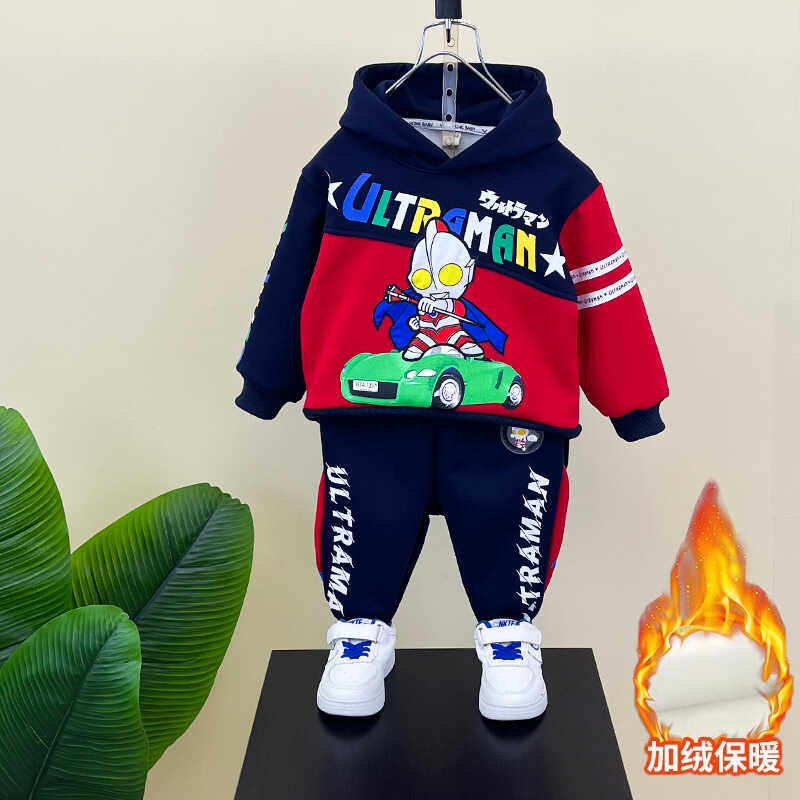 奥特曼衣服男童套装秋冬款2025新款儿童加绒卫衣宝宝冬装两件套潮