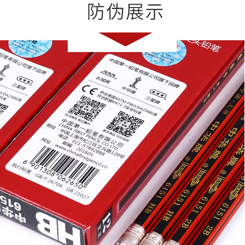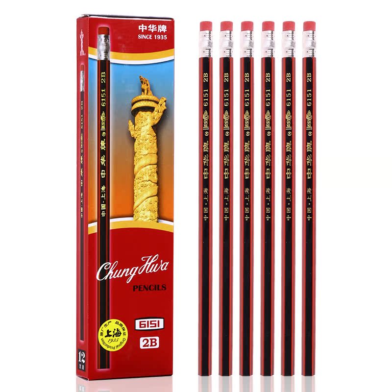 中华牌正品小学生铅笔hb儿童幼儿园铅笔批发考试涂卡专用笔带橡皮擦头的铅笔套装文具一年级二年级6151经典款