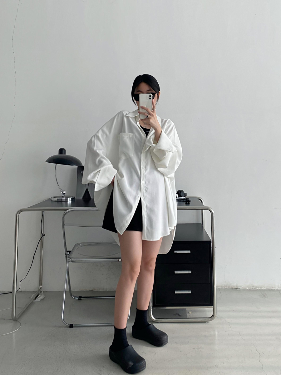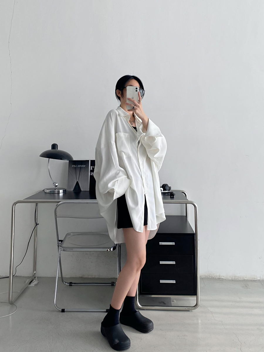 sun柚 春秋季慵懒法式白色衬衫女设计感小众宽松长袖衬衣外穿上衣