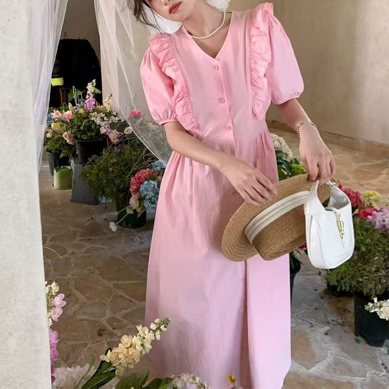 学院风森系甜美连衣裙少女夏装新款初高中学生公主风粉色