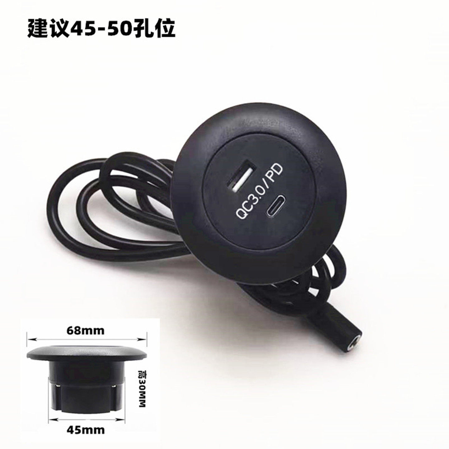 嵌入式快充插座TypeC口USB手机充电器暗装式办公桌面沙发隐藏圆形
