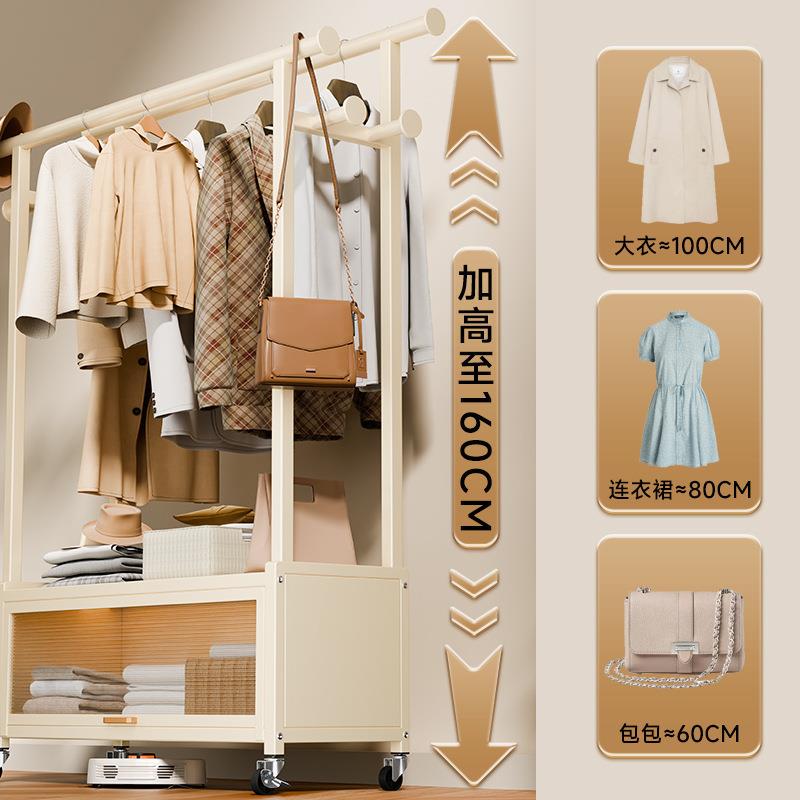 晾衣架落地式卧室晾挂衣架可移动包架子收纳衣服置物架双杆衣帽架