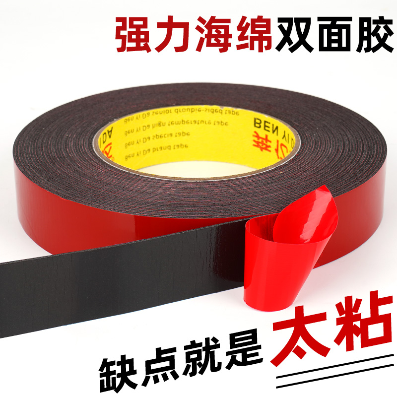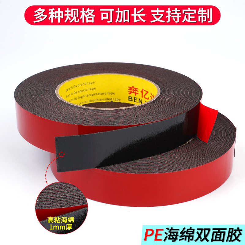 强力PE红膜黑色双面胶海绵高粘度泡沫泡棉厚铭牌粘铝板广告牌铝合金KT板固定墙面胶贴真石漆工业胶带