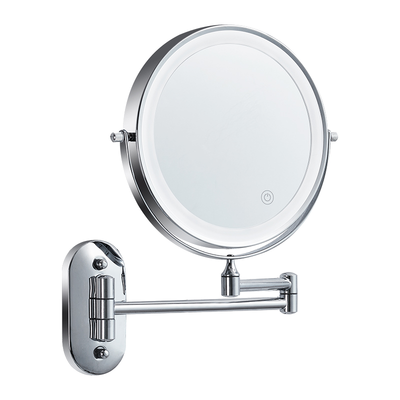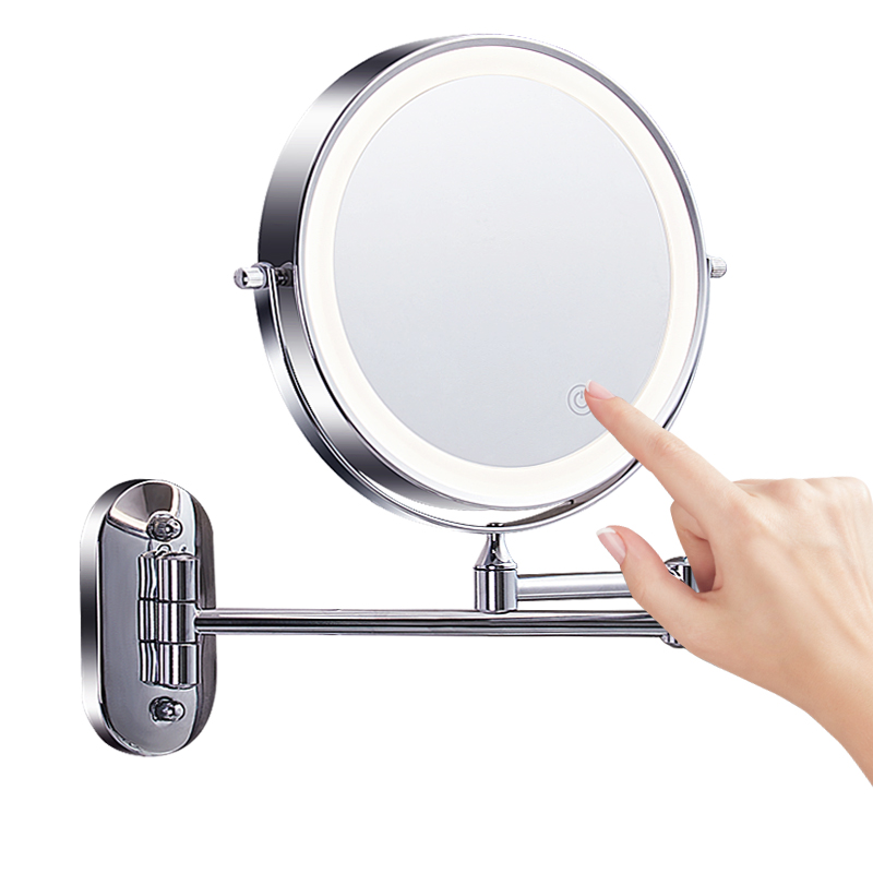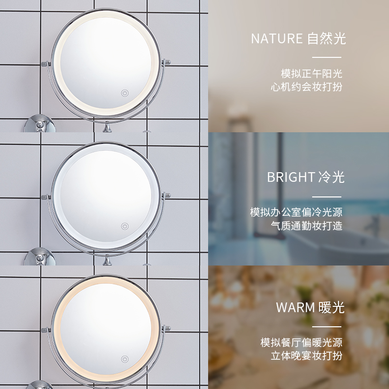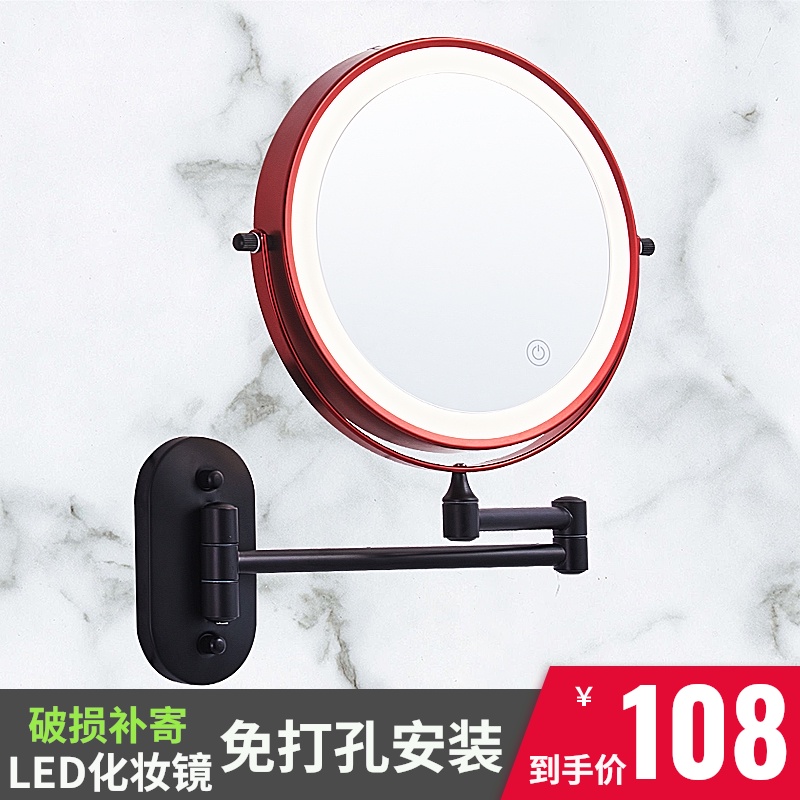 浴室化妆镜壁挂折叠镜子免打孔卫生间防雾双面带灯led伸缩梳妆镜
