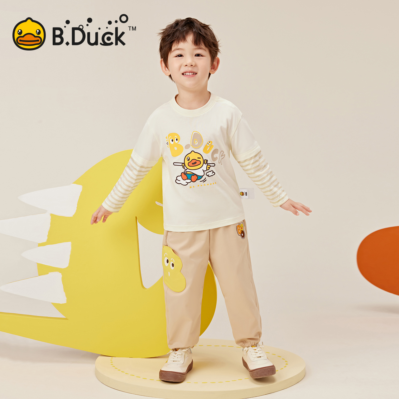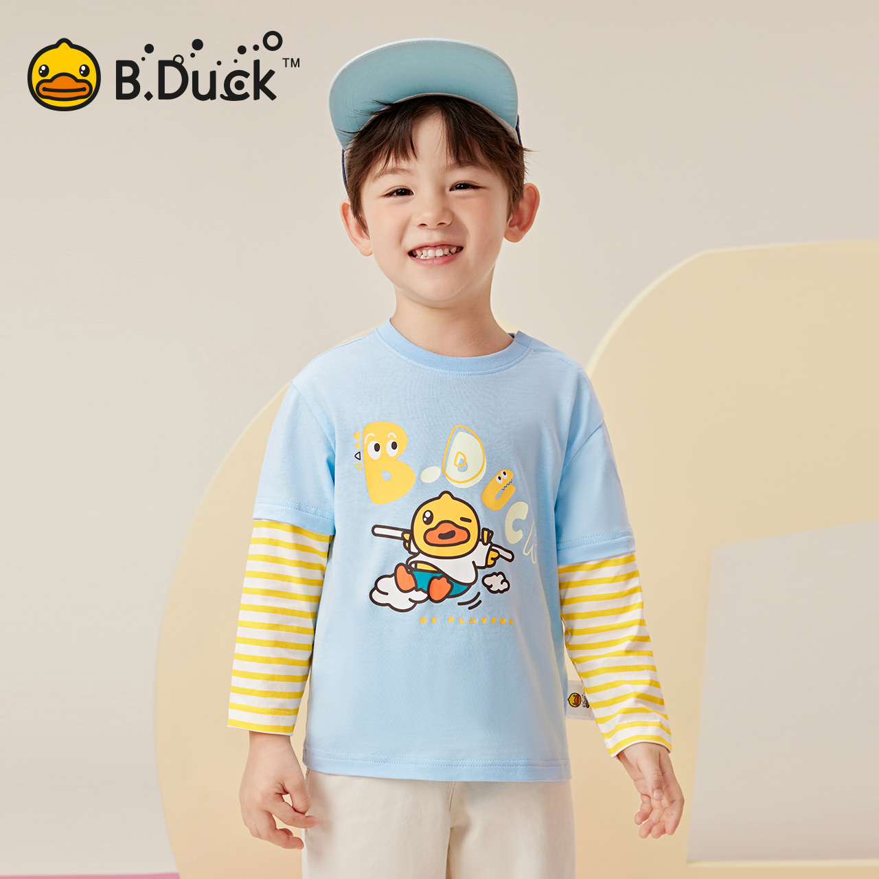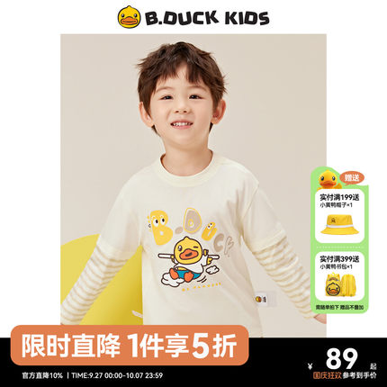 bduck小黄鸭童装男童t恤假两件潮