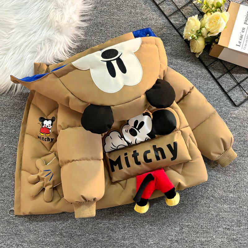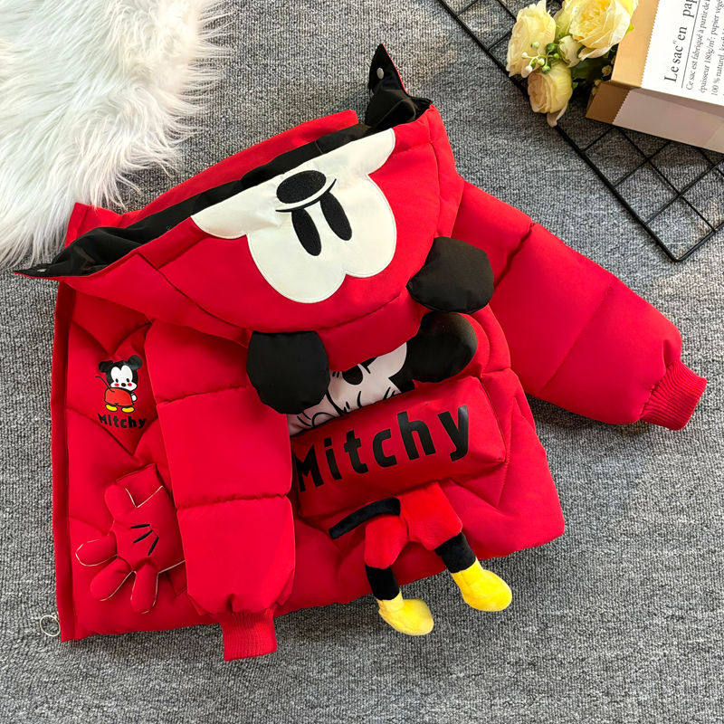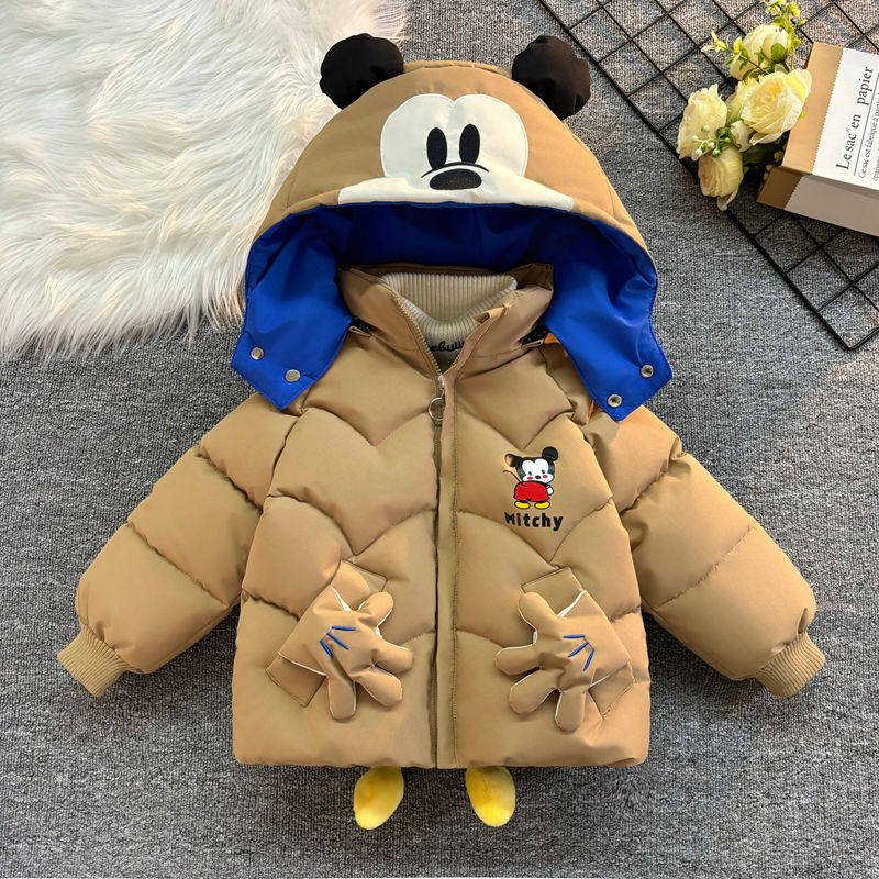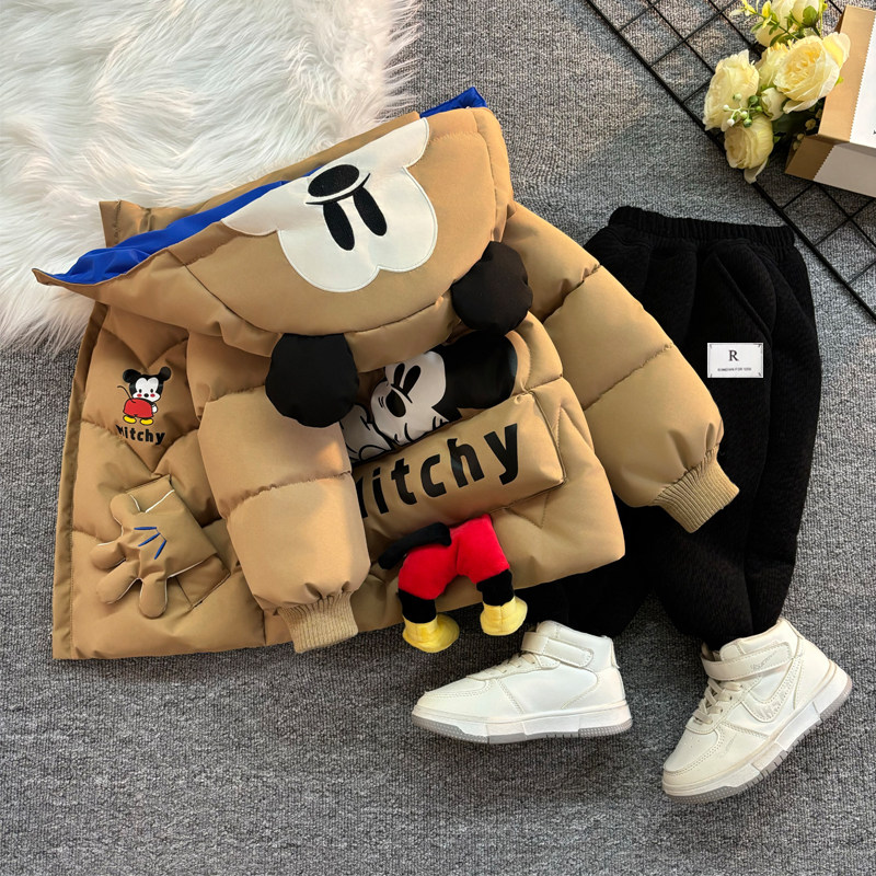 男童冬装加绒加厚外套女童卡通米奇棉服女宝宝棉衣套装羽绒棉服潮