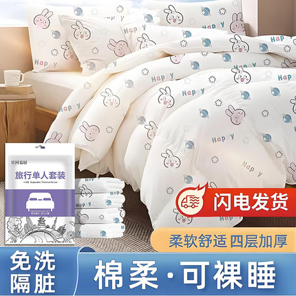 旅行一次性四件套床单被罩被套旅游酒店双人加厚床上用品隔脏浴巾